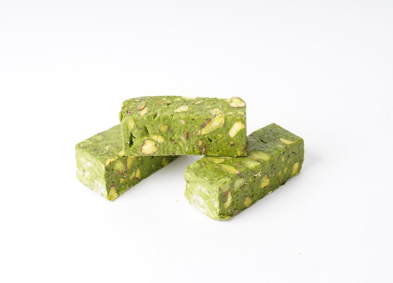 أصابع النوغا الخضراء مع الفستق الحلبي وعجينة الفستق